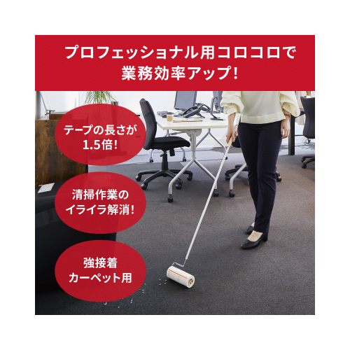 1.5倍巻きでより便利になったコロコロリニューアルシリーズ!スカットカット入りでより切り取りやすく作業性が向上されました。強・弱のダブル粘着で様々な床に使えるマルチタイプです。●幅/160mm●テープ芯径/38mm●材質/テープ:スパイクドット粘着加工紙、オレンジライン:PP●機能/スカットカット、矢印印刷●テープ巻数/約115周巻●粘着面/スパイクドット●寸法(1巻)/幅160mm×20.4m巻(約115周)、芯径38mm●単位/1パック(2巻入)