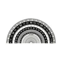 目盛りが読み取りやすいブラック定規。分度器の裏面に滑り止め加工を施し、線が引きやすい。5度ごとに長さの違う目盛りで読み取りやすい。●材質/PMMA/●仕様/9cm/●サイズ/H45×W90×D1.5/●単位/1個