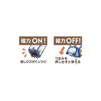 鉄粉入りなので消しクズが磁石にくっつきます。ケースの底にネオジム磁石が内蔵してあり、消しクズを集めワンタッチでゴミ箱に捨てられます。日本製の消しゴム。動物は全部で10柄。※絵柄はお選びいただけません。●材質/(本体)PVC、フェライト(ケース)PP、ネオジム磁石●カラー/動物10柄●サイズ/H64×W16×D16mm●単位/1個