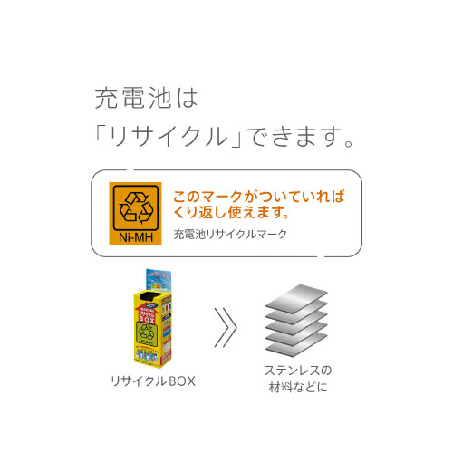 電池容量アップ(※従来品BK-1MGCと比べて※)長もち。容量min.6000mAh(※JIS C8708 2019(7.3.2)の充放電条件に基づく電池の最小(min.)容量※)●種別/単1形●容量(最小)/6000mAh●寸法/幅34.2mm×奥行34.2×高さ61.5mm●質量/約100g(1本あたり)●充電可能回数/約600回●仕様/ニッケル水素電池●単位/1本