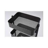 様々なシーンで活躍するキャスター付収納ワゴン。バスケットの底は通気性のよいメッシュ仕様。●カラー/ダークブラウン●外寸法/本体:約幅460×奥行380×高さ810mm、バスケット:410×310×95mm(リング部分除く)●材質/スチール(エポキシ樹脂塗装)●質量/約6.4kg●生産国/中国●内寸法/バスケット:約幅390×奥行295×高さ85mm●耐荷重/全体60kg、1段あたり20kg●付属工具/スパナ●単位/1台
