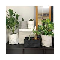モノトーンのクラフトペーパーの質感とデザイン性がグリーンにマッチするプランターカバーです●種別/プランターカバー●カラー/ブラック●寸法/W26×D14×H14cm●材質/紙、PE、綿●対応鉢サイズ/3-4号×2●生産国/中国●単位/1個