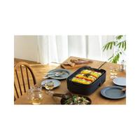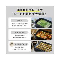 特別な日だけでなく、毎日使いこなせるコンパクトなデイリープレート。3種類のプレートがあるので、シーン問わずに大活躍。程よく重たいアルミダイキャストのふたなので無水調理が可能。●寸法/35.5×26×20.5(cm)●プレート寸法/深なべ:28.5×19×5.5(cm)、平面:28.5×19×2.8(cm)、たこ焼き:28.5×19×0.8(cm)●電源コード長さ/2.5m●質量/6kg●消費電力/1100W●火力調整/WARM、LOW、MED、HI●安全機能/切り忘れ自動OFF、プレートなしでは通電しない構造●付属品/なし●保証期間/1年●単位/1個