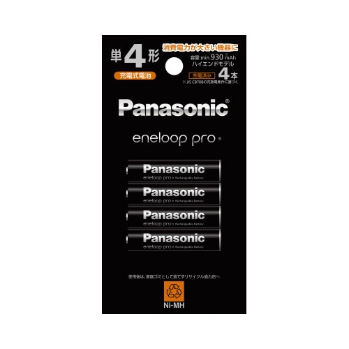 高容量で、長時間機器を使いたい方に最適。容量:min.2500mAh(※JIS C8708 2019(7.3.2)の充放電条件に基づく電池の最小(min.)容量※)低温特性にすぐれ、自然放電が少ない。●種別/単4形●寸法/幅10.5mm×奥行10.5×高さ44.5mm●仕様/ニッケル水素電池●容量(最小)/930mAh●質量/約13g(1本あたり)●充電可能回数/約150回●単位/1セット(4本入×5)