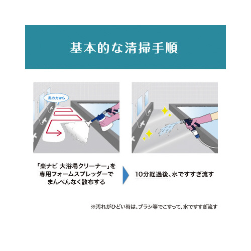 ※本製品液剤は入っておりません。※作業時は必ず保護メガネ、炊事用手袋を着用する。※「楽ナビ大浴場クリーナー」専用のフォームスプレッダーです。他の洗浄剤等を入れて使用しない。