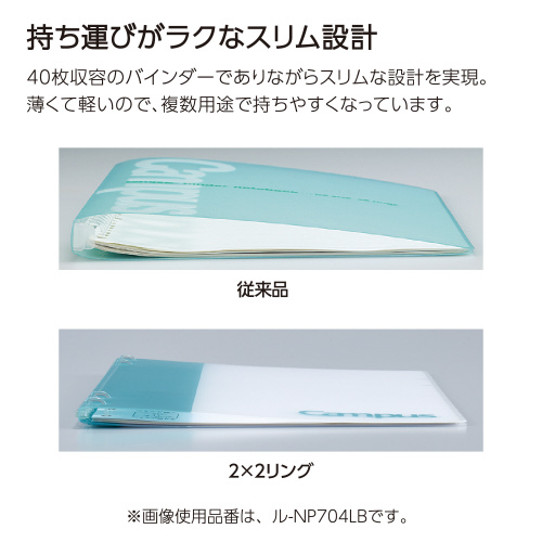 綴じたままでも書きやすい2X2リング!ノートのように使える薄型バインダー●サイズ/A5タテ●カラー/グレー●材質/表紙:再生PP、とじ具:PC●最大収容枚数/40枚●穴数/2穴リング×2か所●種別/樹脂製とじ具●セット内容/扉紙・ルーズリーフ10枚(ノー807BTN)●紙質/上質紙●紙厚/0.10mm程度●坪量/70g/平方メートル●寸法(タテ×ヨコx背幅)/217×162×14mm●罫内容/中横罫(ドット入り)●単位/1冊