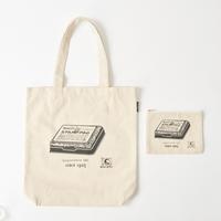 レトロ文具を日常に。文具メーカーのデザインをあしらったトートバッグです。SHACHIHATAは「シャチハタ」の「万年スタンプ台」がモチーフ。取り外して使えるポーチにもお揃いのロゴ入りです。●寸法/ヨコ370×タテ390mm●材質/本体・ポーチ:コットン50%、ポリエステル50%タグ:ポリエステル100%●厚さ/95mm●単位/1枚