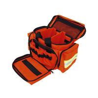 防水・防塵機能の布を採用、軽くて丈夫。マジックテープ式仕切板付で中身を整理するのに便利。衝撃から中身を守る保護パッドが入り。内部体積:約30L。20人から30人用。すぐに使える衛生材料セット付。●寸法/Mサイズ●外寸法/横400×高さ250×奥行230mm●質量/1405g●セット内容/(各1個)カット綿25g、ガーゼ1m、サージカルテープ12.5mm、伸縮包帯M、キズ洗浄消毒液80ML、手指・皮膚の洗浄消毒スプレー83ml、救急バンM80枚入、衛生ピンセット12.5cm●販売名/リーダー救急バッグMサイズ●薬事分類/雑貨●バッグ材質/オックスフォード生地(塩化ビニルコーティング)、防水クッション:EPE(発泡ポリエチレン)●バッグカラー/オレンジ●単位/1セット
