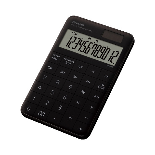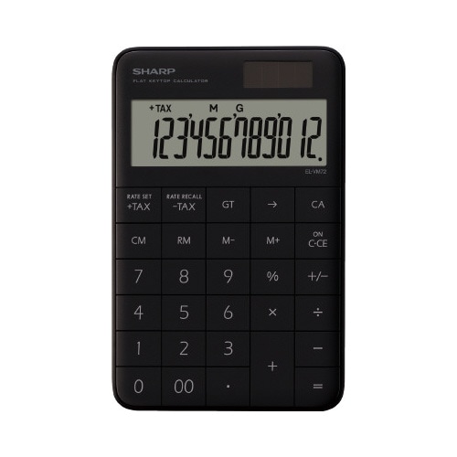 フラットなキーデザインを採用した、スタイリッシュな電卓。かさばらずに持ち運びしやすい。コワーキングスペースやカフェなどの空間にもマッチし、おしゃれなビジネスアイテムにこだわる方にもおすすめ。●カラー/ブラック系●質量/約145g●サイズ/S●寸法/幅100×奥行155×高19.3mm●桁数/12桁●電源/太陽光+アルカリ電池(LR44)×1●保証期間/1年●チルト/無●メモリー/2(4キーメモリー+GT)●四捨五入/無●演算状態表示/有●キー材質/プラスチックキー●その他機能/定数計算、税計算、早打ち●単位/1台