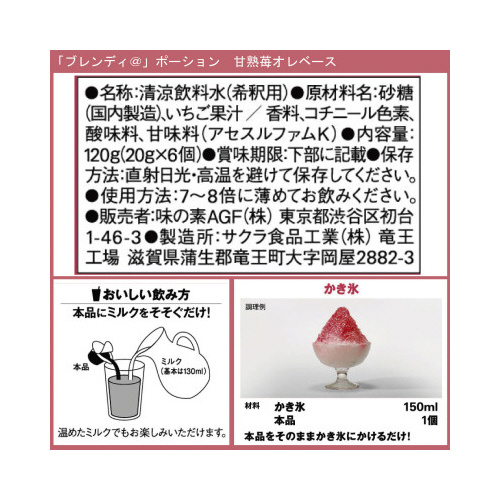 | 商品名 | ブレンディ ポーション 甘熟苺オレベース6個×3※ |