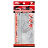 三角定規 分度器 直線定規の入った定規セット お名前シール付き●材質/R-PET●原産国/日本●商品サイズ/幅82×奥70×高さ3mm●単位/1個