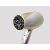 海外兼用、軽量、コンパクト●カラー/ゴールド●本体サイズ/(幅)18.1×(奥行)8×(高さ)19.6cm●本体重量/410g●電源/AC100V-200V/120V-240V 50/60Hz●消費電力/100-200V:850W/120V-240V:1200W●コードの長さ/約1.7m●機能/ツインマイナスイオン、遠赤セラミックコーティング、毛髪巻込み防止機構、メインスイッチ:HIGH-LOW-OFF●単位/1台