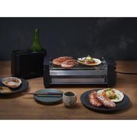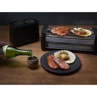 スイッチはON/OFFのみの簡単操作●カラー/ブラック●本体サイズ/(幅)36×(奥行)15×(高さ)11.7cm●本体重量/1200g●電源/AC100V 50/60Hz●消費電力/800W●コードの長さ/約1.5m●機能/ヒーター:シーズヒーター●付属品/焼き網、平プレート、油受けトレイ●単位/1台