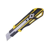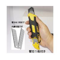 大型刃(刃幅25mm、刃厚0.7mm)搭載カッターです。業界初の特殊なスライダーで、「オートロック」「ダイヤルロック」両方の機能を備えています。内蔵カートリッジに替刃1枚付き。替刃は2枚まで内蔵可能。●種別/カッターナイフ●カラー/イエロー●寸法/縦181mm×横48mm×29mm●材質/本体=PP、ステンレス、TPE刃=SK-2(日本特殊鋼材)●刃厚/0.7mm●刃幅/25mm●機能/オートロック、ねじロック●質量/148g●付属品/替え刃1枚●単位/1セット(10個入)