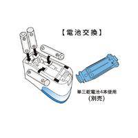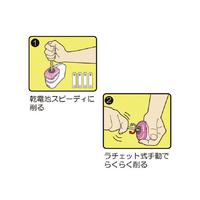 電動鉛筆削りとしても、手動鉛筆削りとしても使える便利な鉛筆削りです。手動で削る時はラチェット式なのでラクに素早く削る事が出来ます。単三乾電池4本使用(別売)。替刃1個付。●寸法/幅43mm高さ79mm奥行110mm●質量/121g(乾電池無し)●材質/本体=ABS、くず箱=AS●種別/鉛筆削り器●タイプ/電動●機能/電動でも手動でも使用可能●機構/手動時ラチェット式●電源/単三乾電池4本●カラー/ブルー●単位/1セット(10個入)