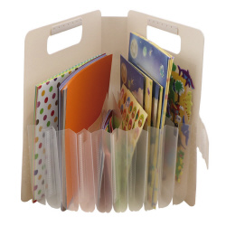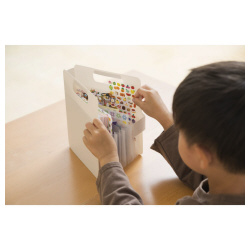 蛇腹形状なのでワンアクションで中身を取り出せて、使用後は閉じるだけで片付け完了!面ファスナー付きで中身が飛び出しません。●サイズ/縦250×横210×高さ36m●カラー/ホワイト●材質/PP●質量/92g●容量/150×150mmまでの折り紙●機能/折り紙・シール収納ケース●仕様/面ファスナー付き●単位/1個