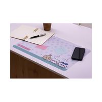 好きなキャラクターを見ながら仕事や学習に使えるミニデスクマット。デスクに接する綿は光沢仕上げで滑りにくく、シートの間にメモや平面グッズ(推しグッズ)をはさめる仕様。●寸法(mm)/約450×300×1mm●材質/塩化ビニール●質量/約120g●タイプ/ちいかわ●生産国/日本●単位/1枚