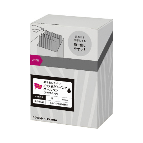 ※1箱単位でお申し込みください。※替え芯は、ゼブラ「JF-0.5芯」シリーズをご利用ください。※対応商品番号/黒:5234-7559、赤:5234-7580、青:5234-7566※商品デザイン、パッケージ、仕様が予告なく変更される場合があります。