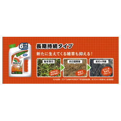 生えてる雑草にかければ、翌日には枯れ始めてやがて根まで枯らす!さらに、土に落ちた成分が新たに出てくる雑草も抑える!6か月間効果が持続。●仕様/シャワータイプ●容量/2L●標準使用量/本剤1本あたり70-130平方メートル●農林水産省登録/第24038号●有効成分/グリホサートカリウム塩0.96%フルポキサム0.25%●寸法/幅99×高さ252×奥行166mm●単位/1セット(8個)