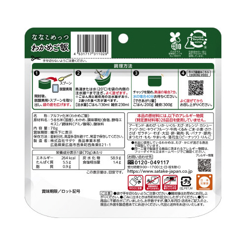 | 商品名 | マジックライス ななこめっつ わかめご飯 50食入※ |