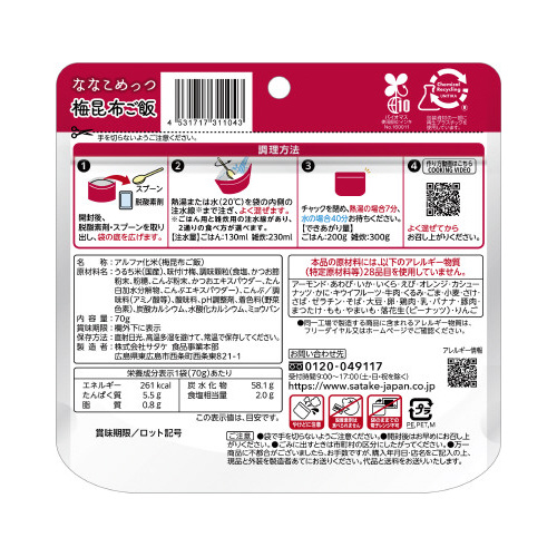 | 商品名 | マジックライス ななこめっつ 梅昆布ご飯 50食入※ |