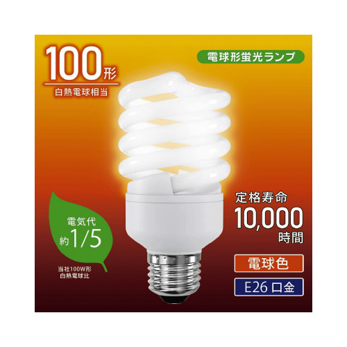 | 商品名 | 電球形蛍光灯 スパイラル E26 100形 電球色 |