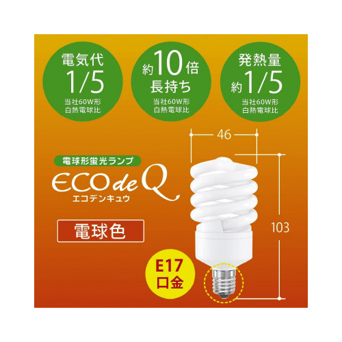 電球形蛍光灯 スパイラル形 E17 60形 電球色