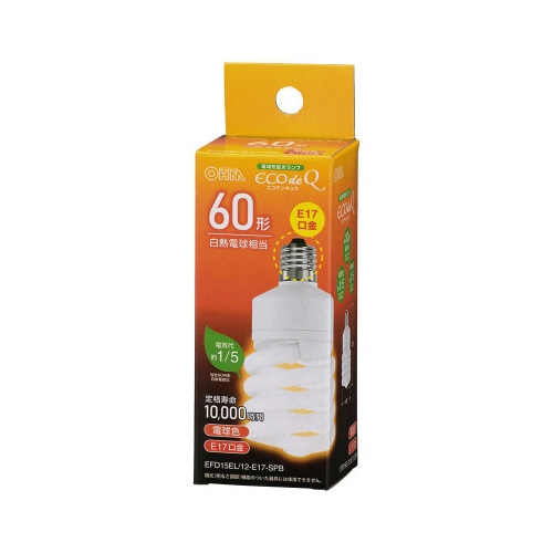 | 商品名 | 電球形蛍光灯 スパイラル形 E17 60形 電球色 |