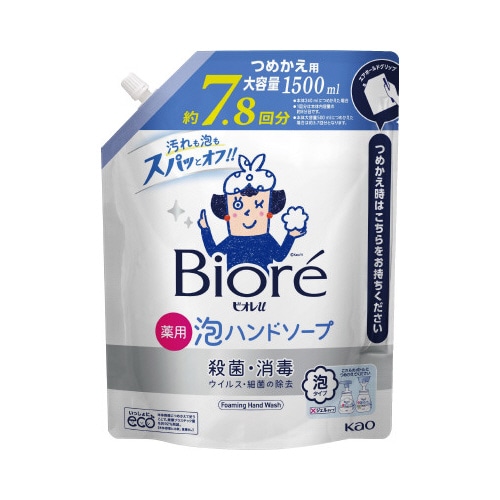 1プッシュですみずみまで洗いやすい「ながもっち泡」。汚れ、ウイルス・細菌を除去●容量/1500ml●成分/イソプロピルメチルフェノール他●種別/詰替用●販売名/ビオレu Hg●液色/透明●液性/弱酸性●香り/マイルドシトラス●薬事分類/医薬部外品●単位/1セット(6個入)●単位/1本