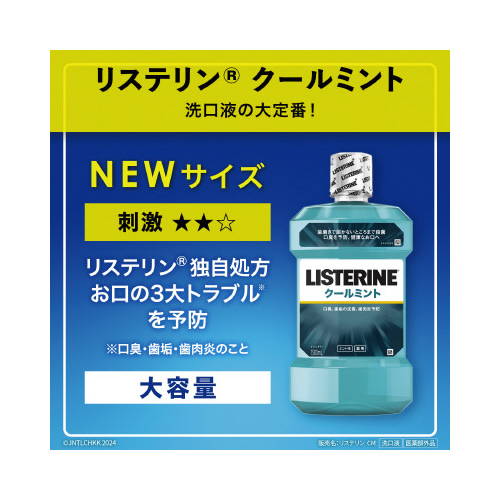 4つの薬用成分がお口の原因菌を殺菌するリステリンの大容量タイプ。●容量/1500ML●成分/1,8-シネオール、チモール、サリチル酸メチル、メントール●種別/クールミント●機能/アルコールタイプ●薬事分類/医薬部外品●販売名/リステリンCM●単位/1ケース(6本入)