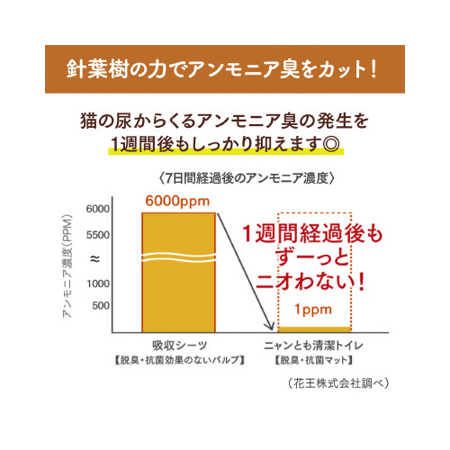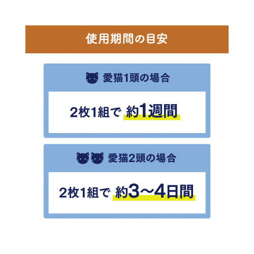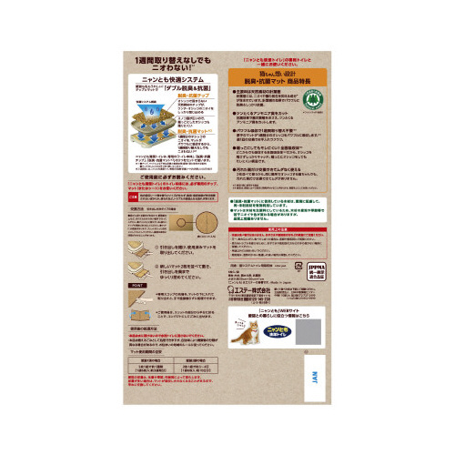 ※「ニャンとも清潔トイレ」の専用トイレと一緒にお使いください・本品は食べ物ではありません。お子さまや認知症の方などの誤食にご注意ください。・万一、口にしてしまった場合は、医師や獣医師にご相談ください。・思わぬトラブルを避けるために、お子さまや認知症の方などの手の届かない場所に保管してください。・用途以外には使わないでください。・開封後は、湿気の少ない風通しの良い場所に保管してください。・「ニャンとも清潔トイレ」のトイレ本体には、必ず専用のチップ、シート(またはマット)をお使いください。・他の吸収シート等を使うとサイズが合わず、脱臭・吸収効果が充分発揮されないばかりか、尿もれなど、トラブルの原因となる恐れがあります。