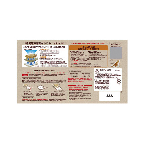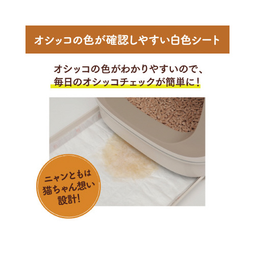 ※「ニャンとも清潔トイレ」の専用トイレと一緒にお使いください・本品は食べ物ではありません。お子さまや認知症の方などの誤食にご注意ください。・万一、口にしてしまった場合は、医師や獣医師にご相談ください。・思わぬトラブルを避けるために、お子さまや認知症の方などの手の届かない場所に保管してください。・用途以外には使わないでください。・開封後は、湿気の少ない風通しの良い場所に保管してください。・「ニャンとも清潔トイレ」のトイレ本体には、必ず専用のチップ、シート(またはマット)をお使いください。・他の吸収シート等を使うとサイズが合わず、脱臭・吸収効果が充分発揮されないばかりか、尿もれなど、トラブルの原因となる恐れがあります。