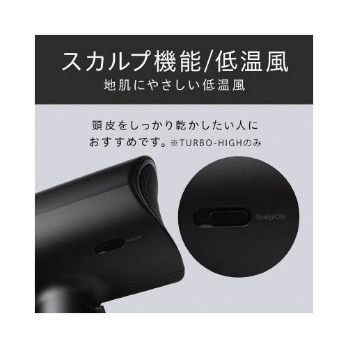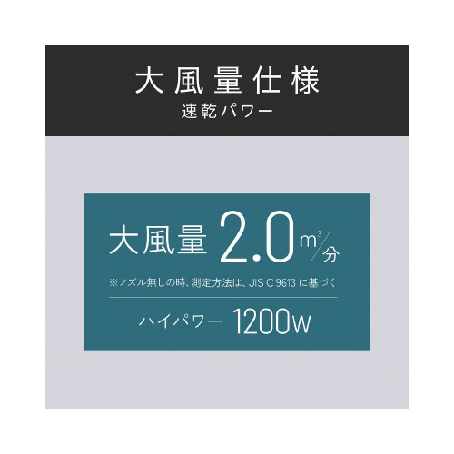 地肌にやさしい低温風の設定ができる「スカルプスイッチ」、温風と冷風を簡単に切替えられる「クールスイッチ」搭載●寸法/約225×85×209mm●カラー/グレー●コード長さ/約1.7m●質量/約510g●消費電力/1200W●機能/イオン:4つのマイナスイオン、クールスイッチ:ON-OFF、スカルプスイッチ:ON-OFF、遠赤セラミックコーティング、毛髪巻込み防止機構●風量/2.0立米/分●付属品/集風器●保証期間/1年間●単位/1台