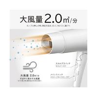 インテリアに調和する、美しい佇まいの収納スタイル。一体感ある本体同色の収納スタンド付き●寸法/約190×88×245mm●カラー/ホワイト●コード長さ/約1.7m●質量/約485g●消費電力/1200W●機能/イオン:マイナスイオン×4、温風温度:HIGH:約95℃(集風器有り)、メインスイッチ:HIGH-LOW-COOL-OFF●風量/2.0立米/分●付属品/集風器(フレックスノズル)、スタンド●モード/SCALP-HOT●保証期間/1年間●単位/1台
