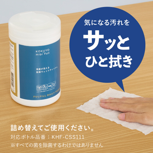 ※全ての種類の菌を除去するわけではありません。※本商品は詰め替え用です。※必ず「残りが見える除菌ウェットシートティッシュ(アルコール・ボトル)」の容器に詰め替えてご利用ください。