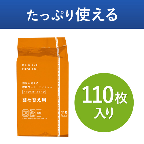 シートの残量が見える半透明キャップ採用で、詰め替え目安がわかるノンアルコールタイプの除菌ウェットティッシュの詰め替え用。アルコールが苦手な方にも安心。防腐剤(パラベン)不使用。●シート寸法/123×180mm●材質/シート:不織布●種別/詰め替え用●枚数/110枚●種類/ノンアルコールタイプ●パッケージ寸法/90×70×185mm●主成分/水、ブチルカルバミン酸ヨウ化プロピニル、BG、セチルピリジニウムクロリド、ベンザルコニウムクロリド、PEG-40水添ヒマシ油、ポリアミノプロピルビグアニド、EDTA-2Na、シメチコン、グレープフルーツ種子エキス●M品番/KHF-CSR121●単位/1個(110枚入)