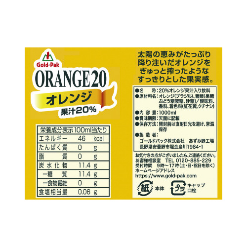 | 商品名 | オレンジジュース20% 1L 6本※ |