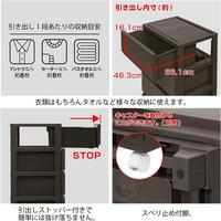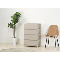 光沢を抑えたマットな質感とシックな色合いのワイドタイプインテリアチェストです。工具不要で簡単に組み立てられます。●種別/収納チェスト●仕様/4段●カラー/グレージュ●引出し内寸法/幅463×奥行361×高さ161mm●材質/ポリプロピレン スベリ止め:ウレタンフォーム●質量/5.8kg●生産国/日本●外寸/幅540×奥行415×861mm●天板耐荷重/3kg●引出し耐荷重/3kg●単位/1台
