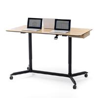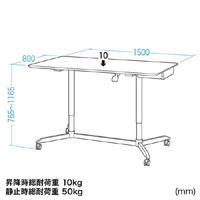 手軽に使える高さ調整可能なガス圧昇降ミーティングデスク。幅1500mm×天板奥行き800mm。高さ可動範囲H765ー1165mm。薄い木目。●カラー/天板/薄い木目フレーム/ブラック●サイズ/W1500×D800×H765ー1165mm(キャスター使用時)●重量/42.35kg●天板昇降範囲/キャスター使用時/H765ー1165mmアジャスター使用時/H705ー1105mm●梱包/2個口/1625×885×80mm・24.45kg1440×840×105mm・24kg●材質/天板/木製(MDF)+塩化ビニルシート貼り、フレーム/スチール(エポキシ樹脂粉体塗装)、昇降フレーム/アルミ(エポキシ樹脂粉体塗装) ●付属品/アジャスター(4個) ●昇降時総耐荷重/10kg●静止時総耐荷重/50kg●単位/1台