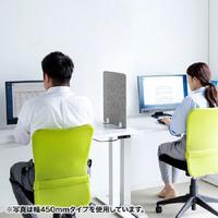 簡単に設置できてプライバシーに配慮する、フェルトパーティション。幅600×高さ450mm。●カラー/パネル/ライトグレーL字プレート/ホワイト●サイズ/W600×D109×H450mm●パネル厚さ/9mm●重量/0.6kg●梱包/1個口/709×486×45mm・1.3kg●材質/パネル/PET(フェルト)L字プレート/スチール(エポキシ樹脂粉体塗装)●付属品/L型プレート×4個●単位/1台