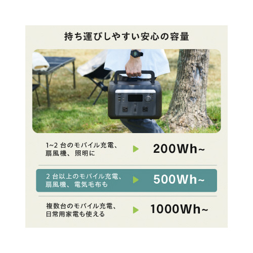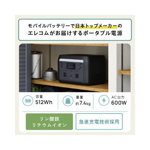 | 商品名 | ポータブル電源512WhAC定格出力600W |
