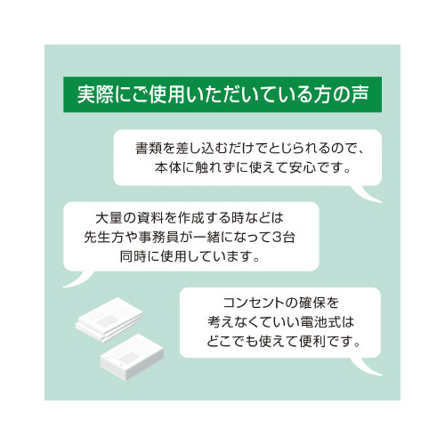 ※掲載とじ枚数は全てPPC用紙64g/平方メートル(55kg)の場合の最大枚数の目安です。紙種や綴じ方によって、綴じられる枚数が少なくなることがあります。