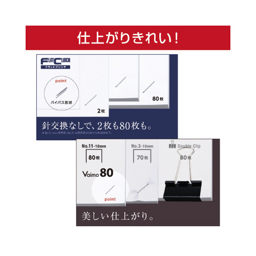 ※バイモ80専用11号針をご使用ください。※とじ枚数は、PPC用紙64g/平方メートルを使用時の数値です。