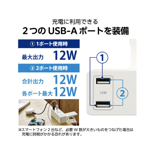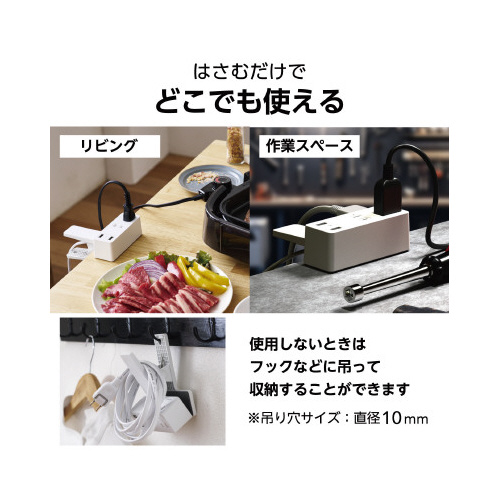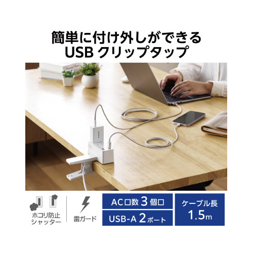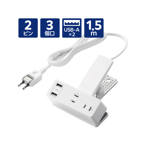 | 商品名 | USBクリップタップ USBA×2 1.5m 白 |