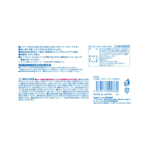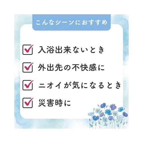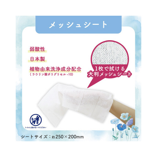 ※※シートは水に溶けません。トイレには流さない※アルコール過敏症の方、特に肌の弱い方、乳幼児は使用しない※お肌に合わない場合は使用をやめる※使用中や使用後、直射日光にあたった後に、赤みはれかゆみ刺激色抜け(白斑等)や黒ずみ等の異常があらわれた場合は使用を中止して皮フ科医等に相談する。そのまま使用を続けますと、症状を悪化させることがあります※内容成分(原材料)のにおいが感じられる場合があるが品質には問題なし※開封後はなるべく早くご使用下さい※【返品に関するご注意】開封後はお客様のご都合による返品はお受けできません。