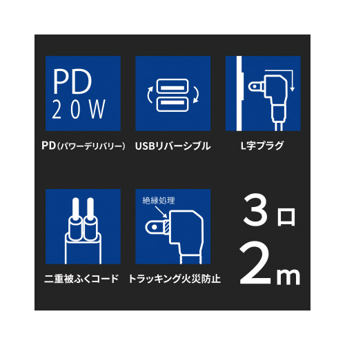 | 商品名 | PD20Wスマートコードタップ3個口2m WH |