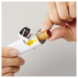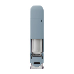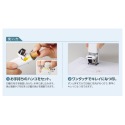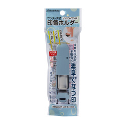 ハンコがワンタッチで捺せる!お手持ちのハンコを入れるだけ!ハンコが使いやすく早変わり!●カラー/グレイッシュブルー●材質/本体:再生PP、ホルダー:再生ABS●本体寸法/幅22×奥行22×高さ97mm●対応印鑑サイズ/直径10から12mmの丸印、最大径10.5から12mmの小判印、長さ60.0mmまで●付属品/すべり止めシール付き●対応カートリッジ/品番:CPHN-RC●単位/1個