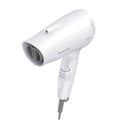 風量1.3m3/分のコンパクトタイプ。●カラー/ホワイト●質量/約420g●消費電力/1200W(ターボ時)●機能/外付けマイナスイオン、速乾ノズル●風量/1.3m3/分(TURBO時、ノズル装着なしの時)●電源コード長さ/約1.6m●電源方式/交流式●温風温度/約110℃(ターボ時)●本体寸法/高さ20.8×幅17.2×奥行7.9cm●電源/AC100V50-60Hz●生産国/タイ●パッケージ寸法/高さ22.4×幅12.5×奥行11cm●単位/1台