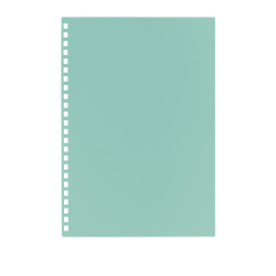 お好きなアイテムを選んでオリジナルノートが作れるカスタマイズオープンリングノート。無地の不透明表紙。●サイズ/A5●カラー/ライトグリーン●材質/ポリプロピレン●穴数/24穴●寸法/縦212×横149mm●生地厚/0.85mm●単位/1個●単位/1枚