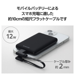 Lightningポート搭載のiPhoneの充電やデータ転送に!モバイルバッテリー用USB-A - Lightningケーブルです。●寸法/-●長さ/約0.1m ※コネクター含まず●ケーブル長/約0.1m ※コネクター含まず●ケーブル太さ/幅約6mm×厚み約2mm●質量/約15g(パッケージ重量)●種別/モバイルケーブル●規格/MFi規格正規認証品●対応転送速度/最大480Mbps ※理論値●コネクタ形状/USB-Aプラグ - Lightningプラグ●シールド方法/2重シールド●プラグメッキ仕様/-●インターフェース/USB-Aプラグ - Lightningプラグ●端子/USB-Aプラグ - Lightningプラグ●カラー/ブラック●メーカー名/エレコム●対応機種/USB-Aポート搭載のモバイルバッテリーとLightningポート搭載のiPhone、iPad、iPod、AirPods●保証期間/1年間●対応OS/※対応OSの最新情報については、メーカーのホームページにてご確認ください。●単位/1個